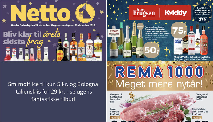 I Netto kan du få Smirnoff Ice, Shaker eller Mokai til en skarp pris af kun 5 kr. pr. stk. Tilbuddet gælder fra lørdag den 27. december til onsdag den 31. december. Husk, der er en begrænsning på 24 stk. pr. variant pr. kunde pr. dag.